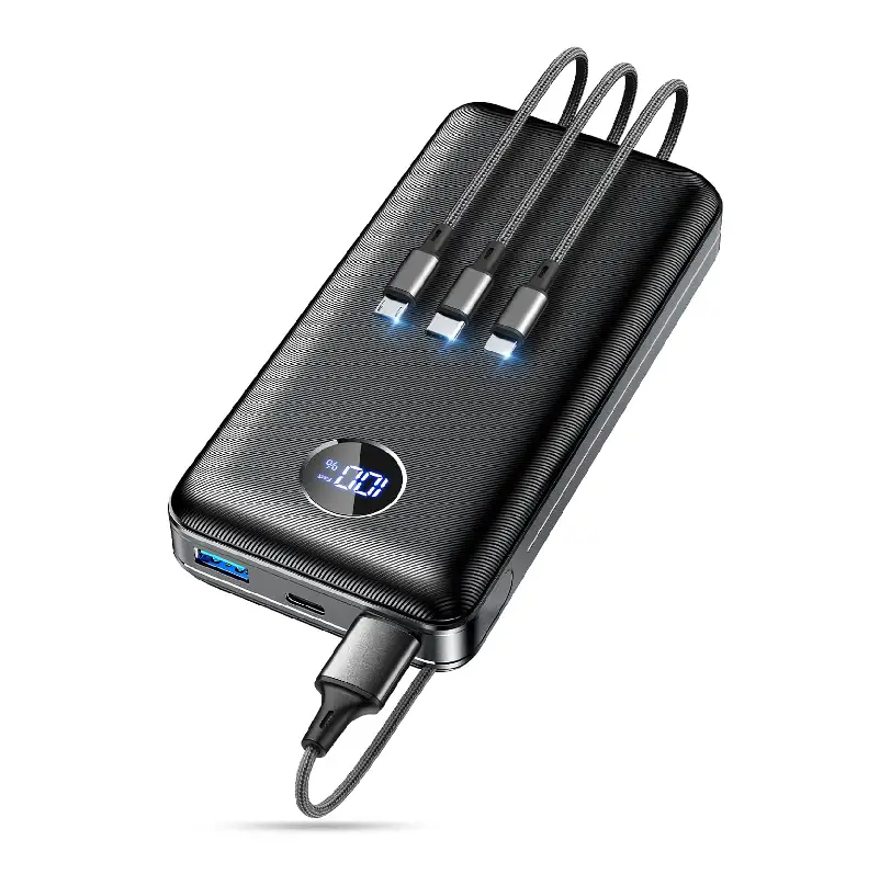 Extra-large 60,000mAh portable charger with 22.5W fast charging and built-in USB-C, iOS, and Micro-USB cables. Ideal for long trips, emergencies, and everyday device charging. Reliable power bank for phones, tablets, and more.