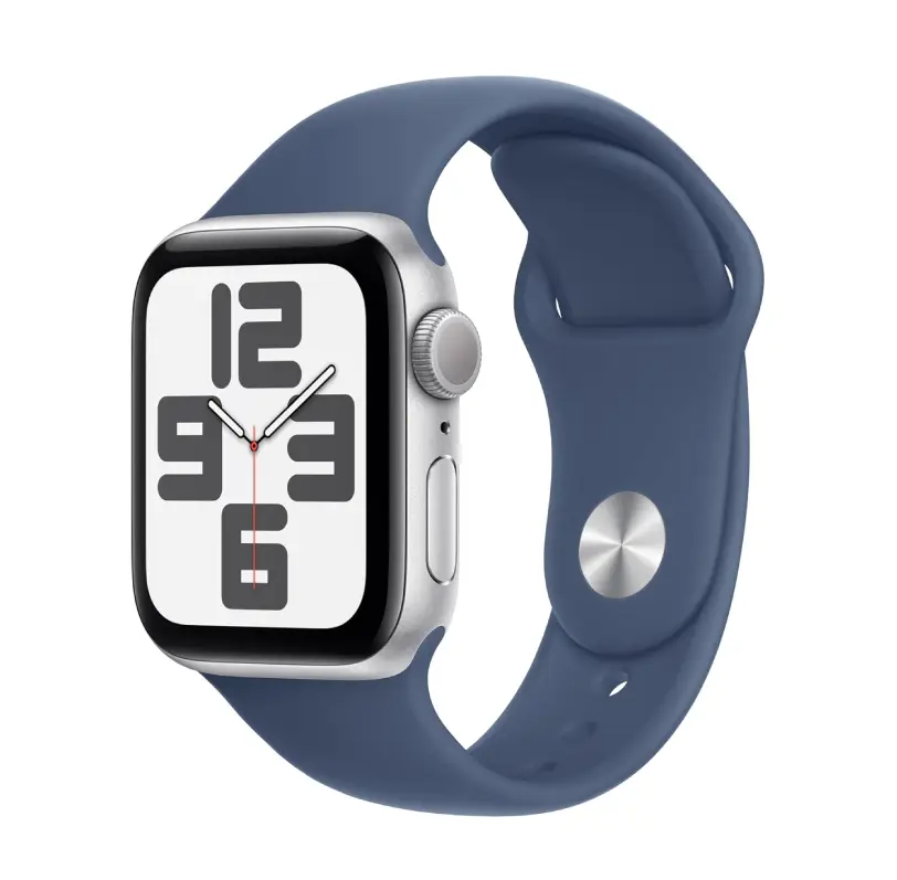 Track your health and stay safe with the Apple Watch SE (2nd Gen) GPS 40mm. Features fitness and sleep tracking, emergency crash detection, and a stylish silver aluminum case paired with a durable denim sport band. Perfect for everyday use and active lifestyles.