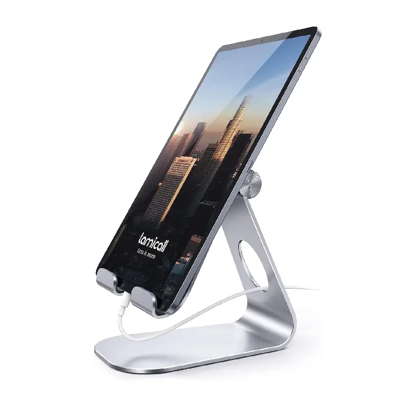 Sturdy, adjustable tablet stand compatible with 4 to 13-inch tablets like iPad Pro 11, 9.7, and 10.5. Perfect for hands-free use, video calls, drawing, and desktop setups at home or office.