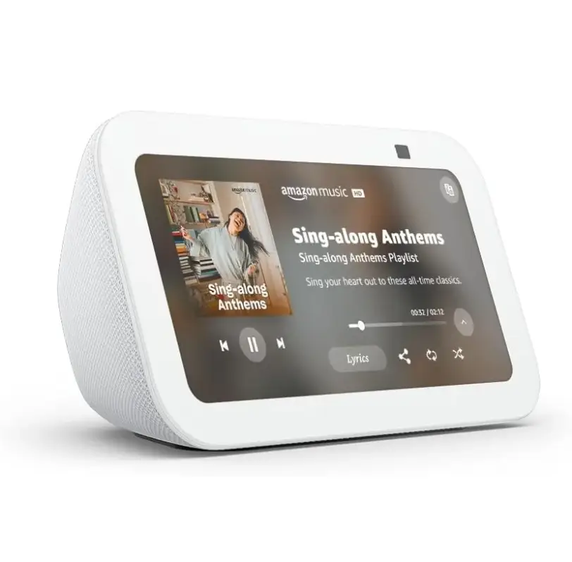 The Echo Show 5 (Latest Model) is a compact 5.5” HD smart display with Alexa, featuring 2x enhanced bass and clear sound for music, video calls, and smart home control. Its sleek Glacier White design fits any room, with built-in privacy controls and easy access to streaming, weather, calendar, and compatible smart devices.